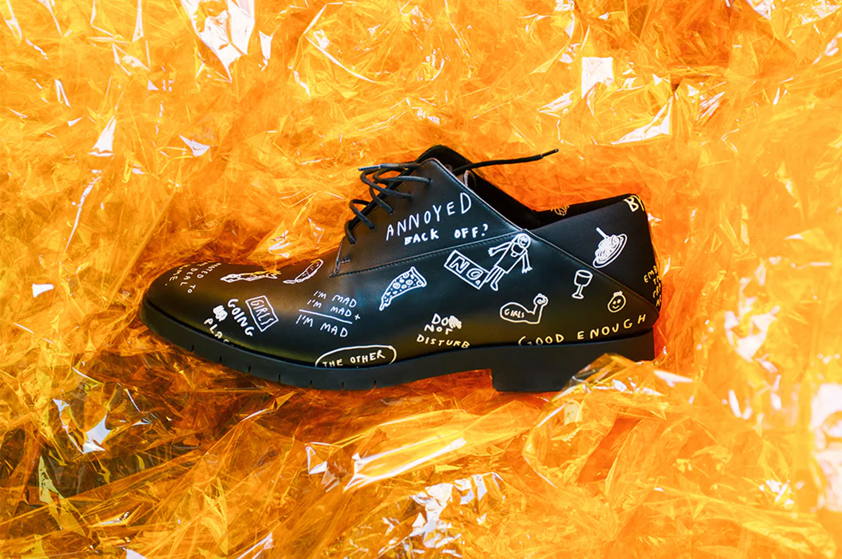 Portuguese designer footwear brand Freakloset invited Wasted Rita to customise 50 pairs of their handmade shoes. Featuring the artist's signature style, the result is an exclusive limited edition of custom shoes guaranteed to impress regardless of the occasion. You can grab a pair of these either at the launch event at Underdogs Art Store on Wednesday 7 November (6.30pm – 8.30pm) or from freakloset.com. At Rita's request, proceeds from the sales revert entirely to UMAR, a socially-committed feminist organisation working for women's rights.