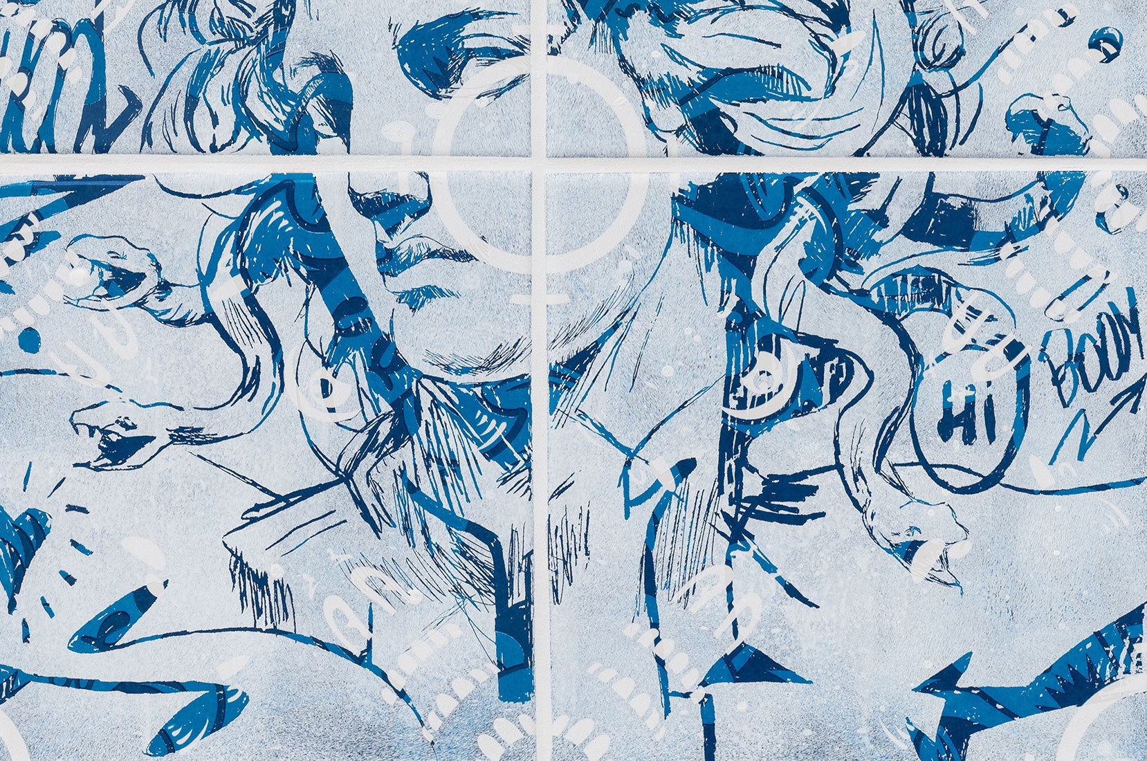 Hand-finished ceramic tiles on water-repellent MDF panel