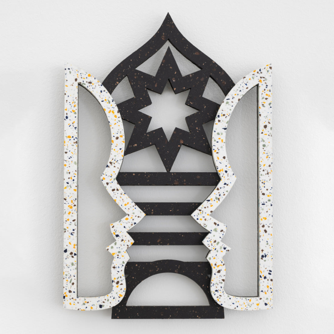 Laser-cutting and assembling on duo tone acrylic stone plaque