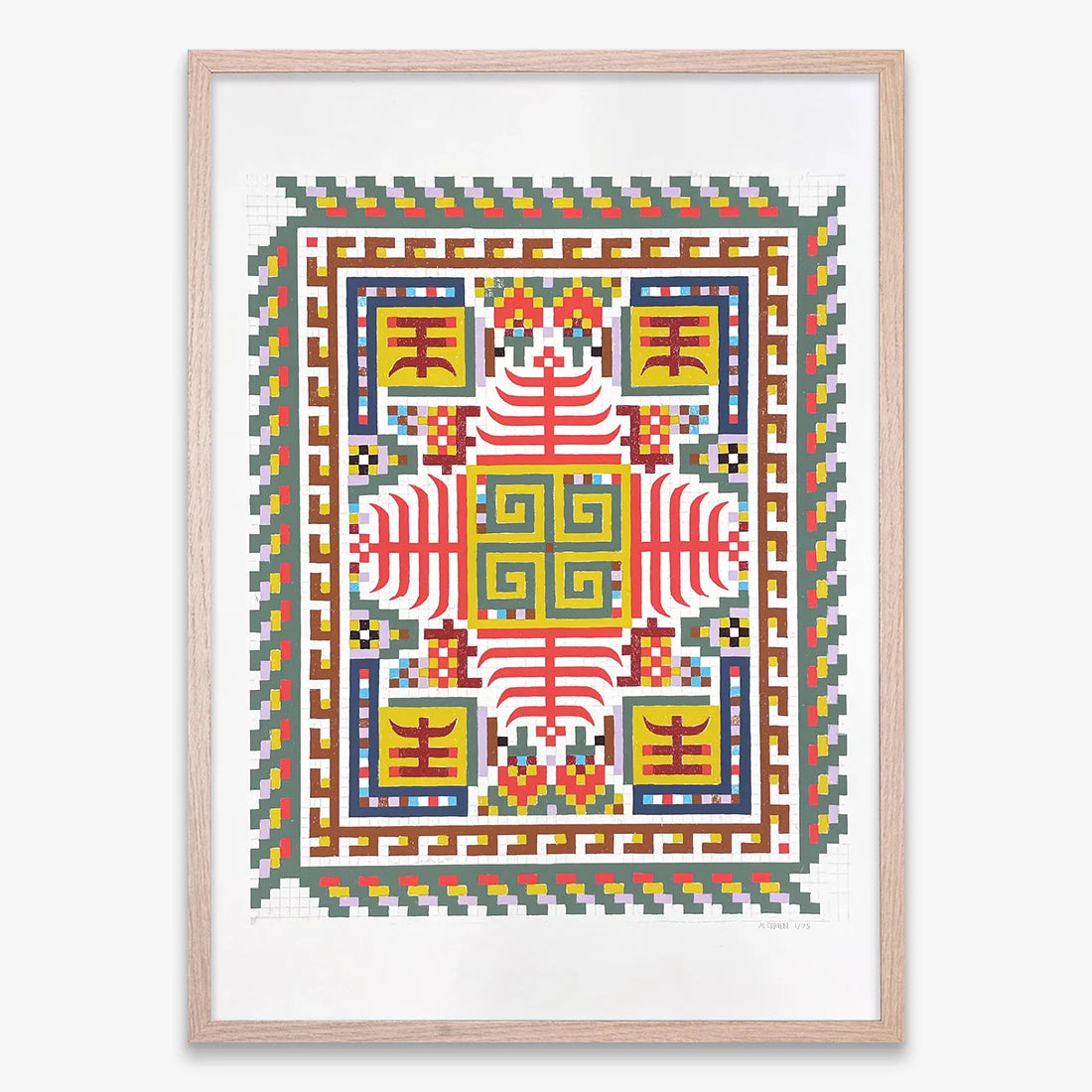 In Bali, Matthew Craven encountered master artisans carving wood and intricate textile traditions rich with pattern and symbolism. Observing their intuitive craftsmanship resonated deeply with his own practice of building complex compositions from simple forms. Inspired by organic motifs and botanical imagery, he integrated subtle references from Balinese iconography into his established visual language. The print merges cultural influence with personal continuity, demonstrating how travel can expand an artist’s vocabulary while reinforcing universal connections found within pattern, repetition, and handmade processes.