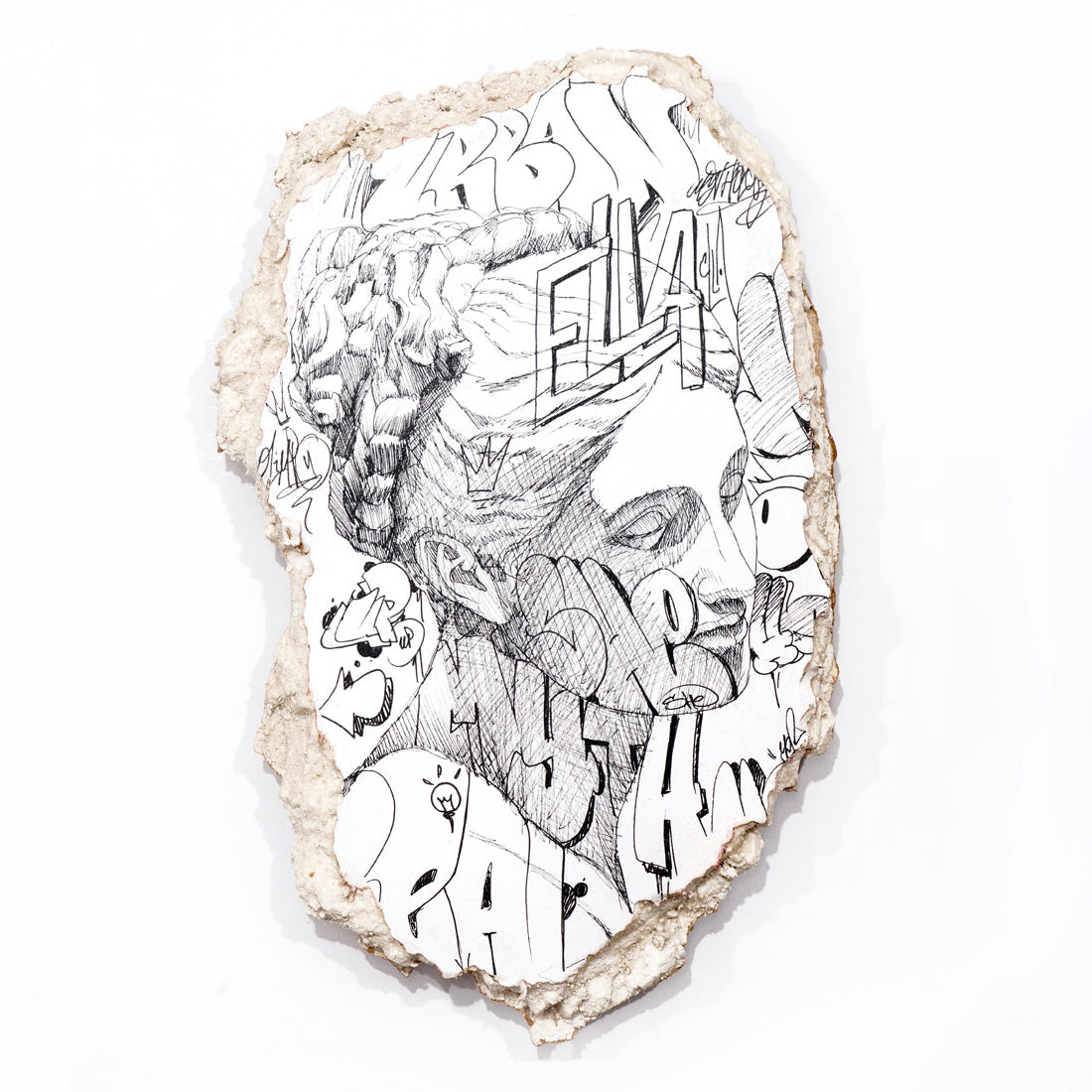 Black ink isograph on paper over drywall
